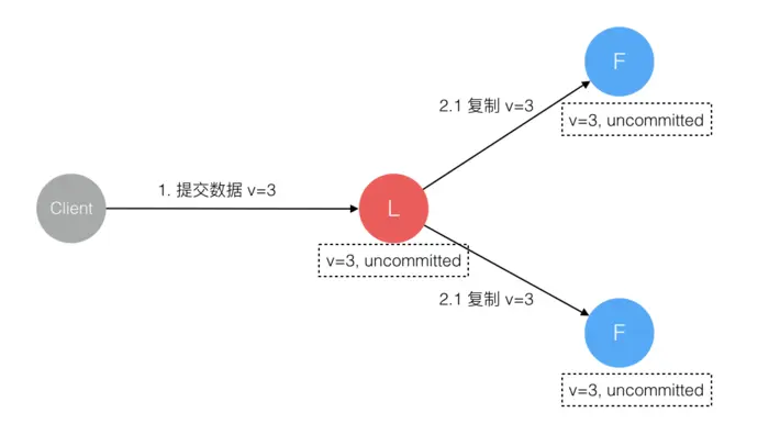 Client向集群Leader节点 提交数据 后,Leader节点 接收到的数据 处于 未提交状态(Uncommitted)。 -