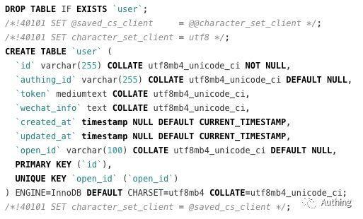 自此我们解决了用户身份的问题,但是现在还不能立即接入业务,我们还需要设计数据库结构。在Authing的协助下,我们完成了三张用户表的数据库设计: