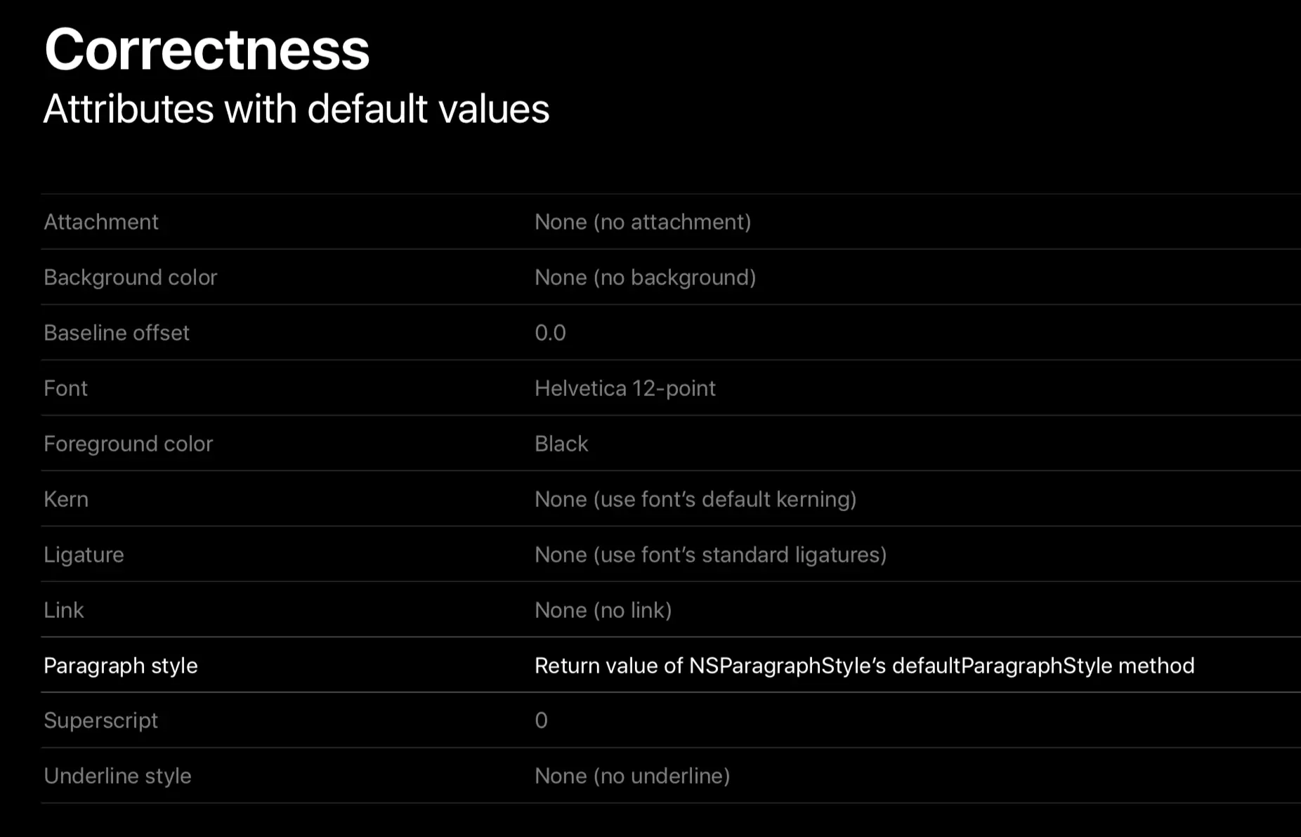 这里特别注意上图标记出的 ParagraphStyle 属性。一个反面案例是: 为了截掉 hate 部分的文本,给这部分文本单独设置了 ParagraphStyle 的属性。然而展示的结果却不符合预期。这是因为在 layout 之前,会进行 attribute fixing,这在前文有述。一个文本段落,却有多个 ParagraphStyle 的属性值,这是违反一致性的,所以系统在 fix attribute 时,会选择第一个 ParagraphStyle 属性,也就是默认风格,并且把它应用于整个段落。
