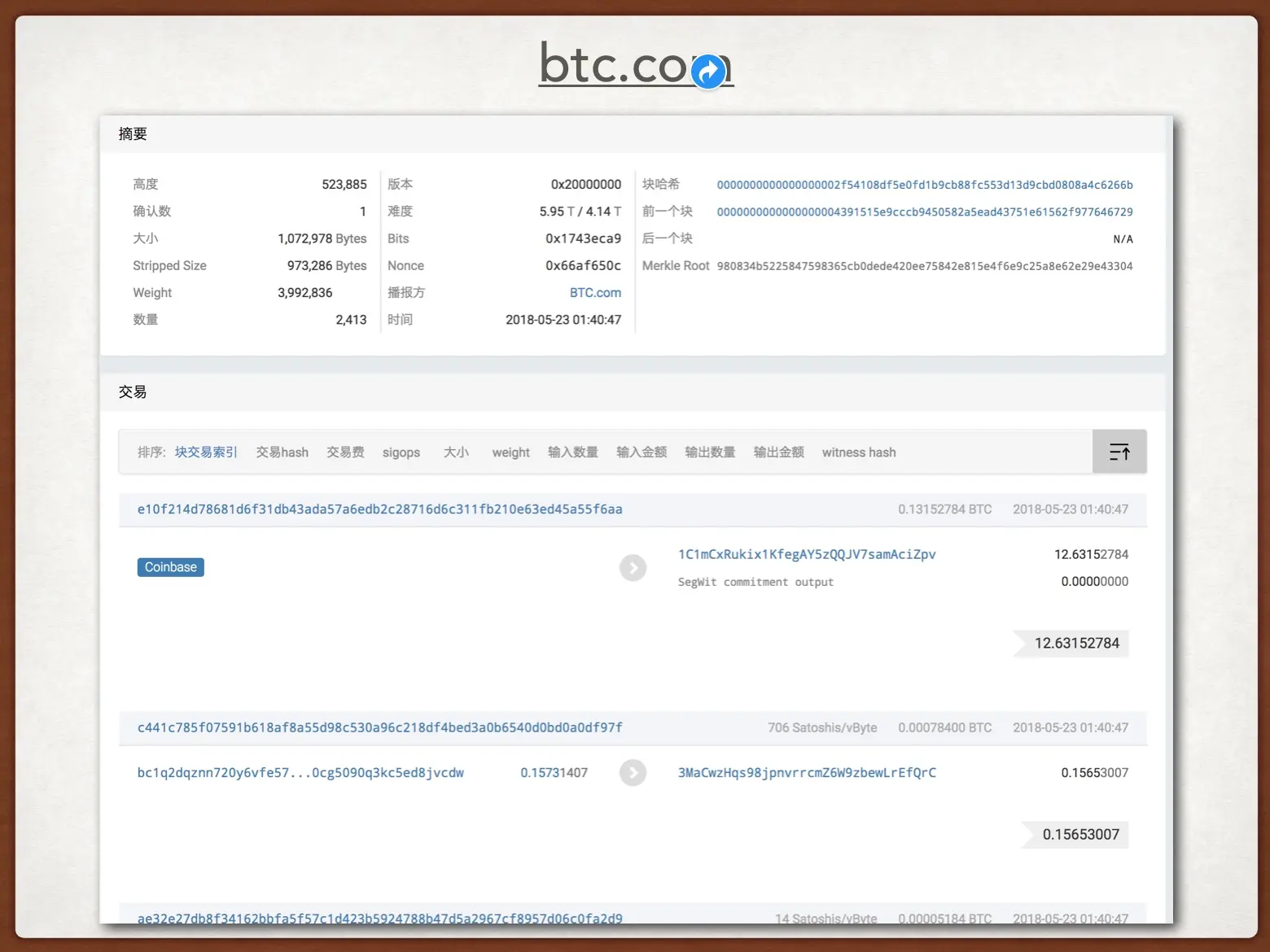 纸上得来终觉浅,如果你想了解更多关于区块数据的知识,可以找一些在线的区块浏览器,一般都是矿池发起做或者官方社区的,比如:比特币区块浏览器(btc.com)、以太坊区块浏览器(etherscan.io) 。你可以在里面看到现实中区块内详细的数据。