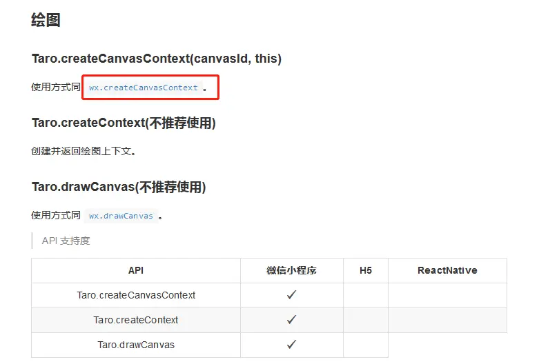 比如,我想做一个canvas保存图片到相册的功能,OK,绘图API嘛,Taro官网是这样的: