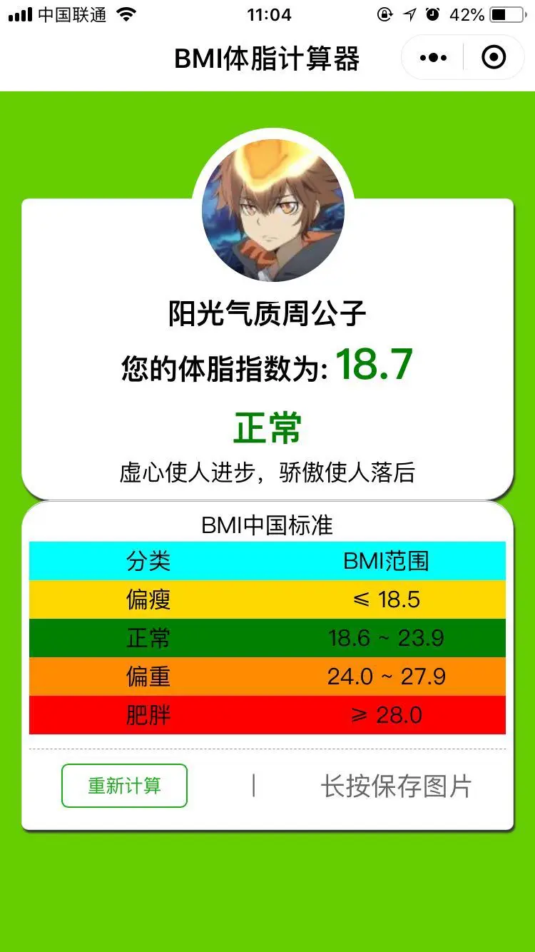 程序很简单,就是输入身高体重,然后根据计算公式生成结果数据,最后为了分享方便还加了一个长按保存图片的功能。总体来说就两个页面: