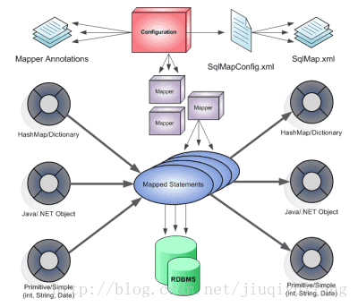 可以看到Mybatis框架的核心是MapperStatements的组件,它主要依赖于 Configuration的Mapper,来完成对操作数据库的操作。