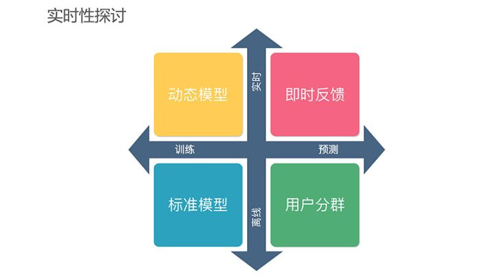在建模环节,实时性是需要考虑的重要因素之一。最传统的离线训练是很常规的建模方式。预测可以选择高性能的离线方式,但它的缺点是反馈太慢,有可能导致结果出来之前没有其他的机会实施运营方案,因而我们需要提供更实时的预测功能。比如用户新安装或完成某个操作之后,系统实时获得预测结果,并立即进行运营干预。