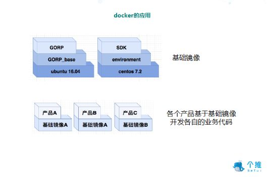 个推在使用Docker时,沿用了Docker镜像的分层策略。首先,个推的各个产品线模块,使用的是各自的基础镜像。其次,个推各产品线的服务程序,打在了各自的基础镜像层之上,这样操作能确保各个容器的运行环境互不冲突。