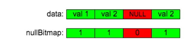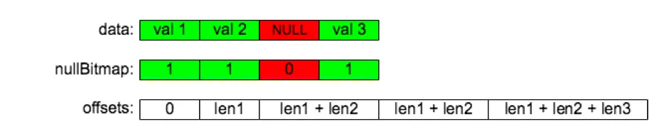 NULL,需要特殊注意的是我们使用 0 表示NULL,1 表示非NULL,和 Apache Arrow 一样。 -