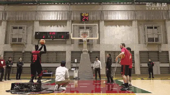 上个月的挑战赛中,CUE机器人两分球的命中数比在场日本职业球员都高,命中率接近100%。