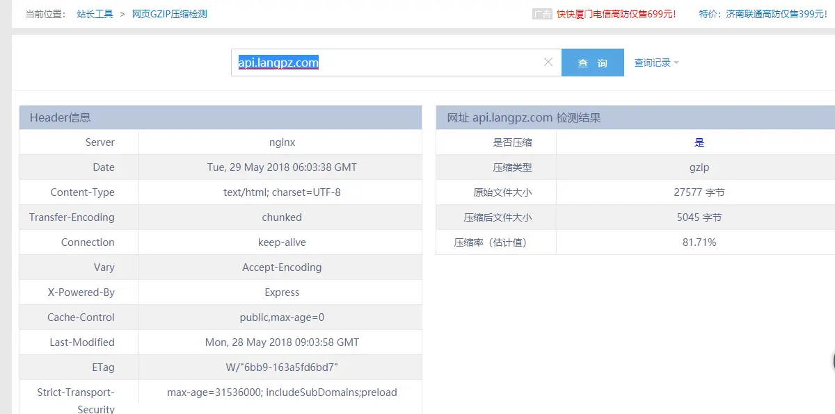 ctrl + c 输入:wq 退出并保存。再执行nginx -s reload。可以去站长之家看你的压缩率tool.chinaz.com/gzips/