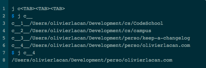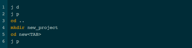 现在只需要 j d(或者 j dev、j develop)就可以跳转到 ~/Develop 目录,j p 就可以跳转单 ~/Develop/project。效率大幅提高。