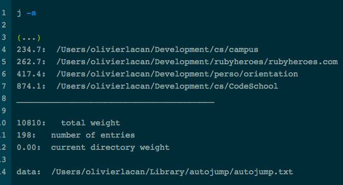 当你第一次输入 cd directory_name,AutoJump 会记录该目录并成为绝对路径,并将其指定权重为 10.0 分。