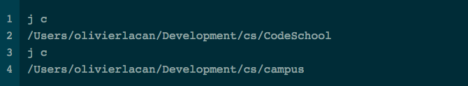 由于 campus 权重低,所以会 j c 会跳到 CodeSchool 目录,如果重复 j c 命令,就会跳转到 campus 目录。