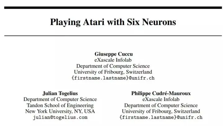 论文:Playing Atari with Six Neurons