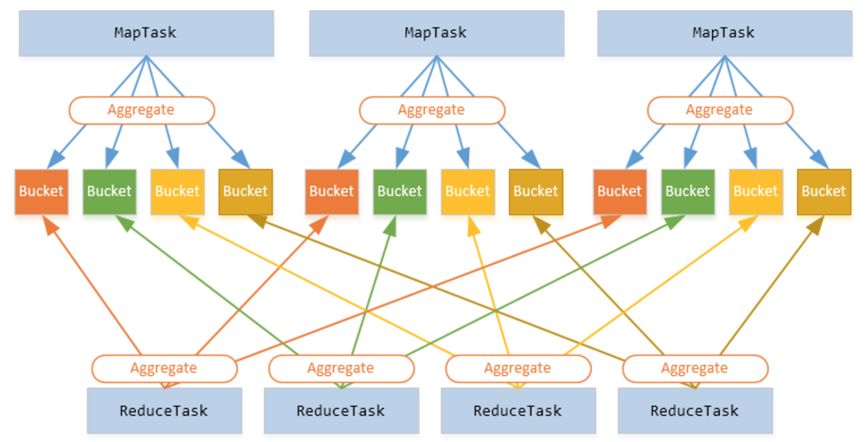 shuffle指的是数据从map阶段到reduce阶段的处理过程。在shuffle时,map阶段的输出会根据hash算法映射为reduce的输入,一个map的所有输出会根据hash算法分散到若干个reduce中。更通俗的说,在进行shuffle时,必须将各个task节点上相同的key拉取到某个task来进行处理。在spark中会会触发shuffle操作的算子有distinct、 groupByKey、reduceByKey、aggregateByKey、join、cogroup、repartition等。