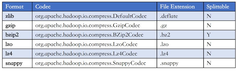 Hadoop生态中各种文件格式对于splittable的支持现状如下图所示: