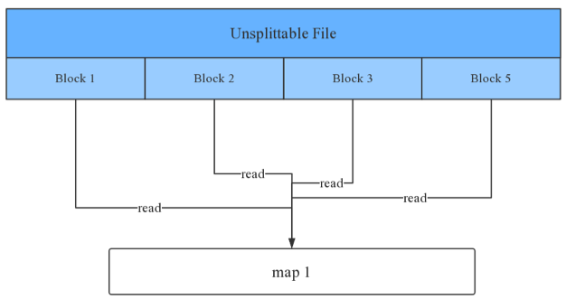 不支持splittable的文件,单个文件的所有数据只能由一个map进行处理,因此对于一个由N个block组成的文件,若N很大,那么就会产生数据倾斜。