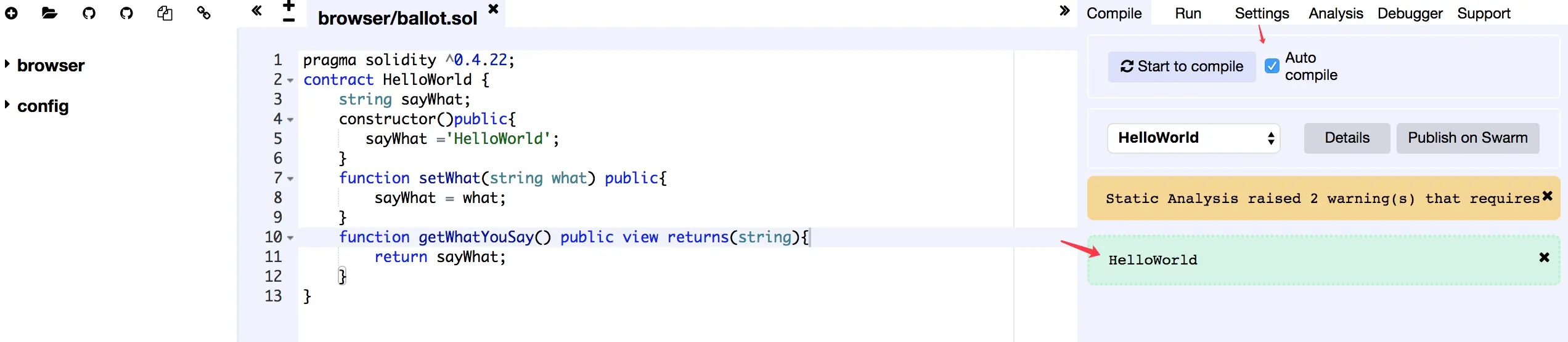 这里是先写了一个helloword 在remix编辑器中热了下身,下面的内容会详细了解remix,还有就是做一些其他的准备工作