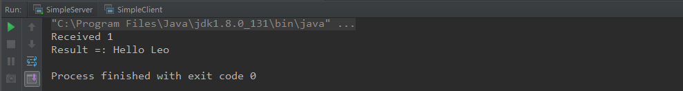 f). 运行客户端程序,客户端通过网络请求HelloWorldService的say()方法的具体实现,控制台输出返回结果: