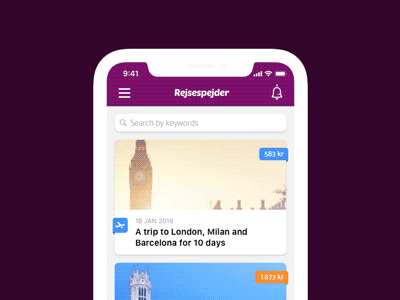 微动画最常用的地方之一是内容滑动。微动画将一个熟悉的滑动手势变成了一个独特的界面,而用户可以在一个连续的流程动画中查看内容。