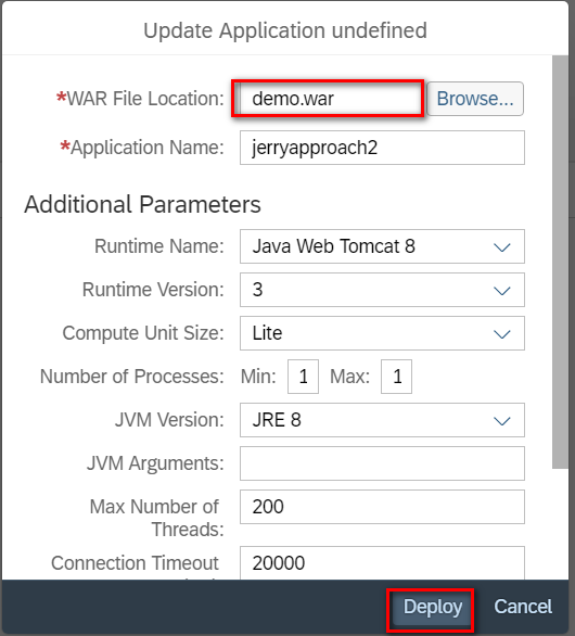 将Java应用部署到SAP云平台neo环境的两种方式 已注销 2018-06-19 240 阅读1分钟 方法1 - 使用Eclipse Eclipse里新建一个服务器: 服务器类型选择SAP Cloud Platform: 点Finish,成功创建了一个Server: Eclipse里选择要部署的项目,右键->Run as Server, 选择上一步创建的Server即完成部署。 方法2 - 使用SAP云平台Cockpit 选择本地打包好的war文件,点击Deploy按钮: 部署成功: 要获取更多Jerry的原创技术文章,请关注公众号"汪子熙"或者扫描下面二维码: