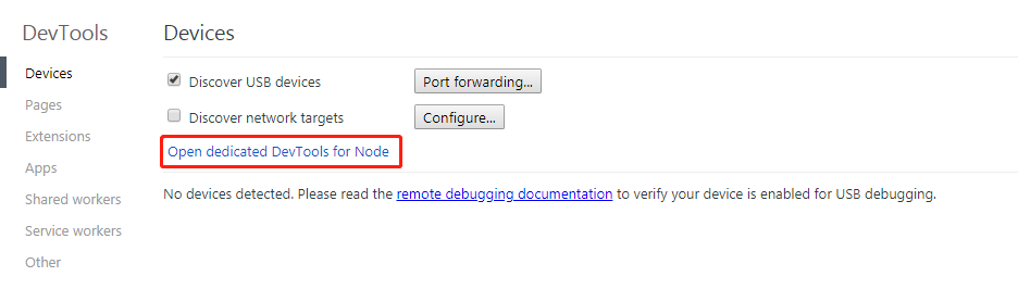 答案是:chrome浏览器自带node.js的调试窗口。