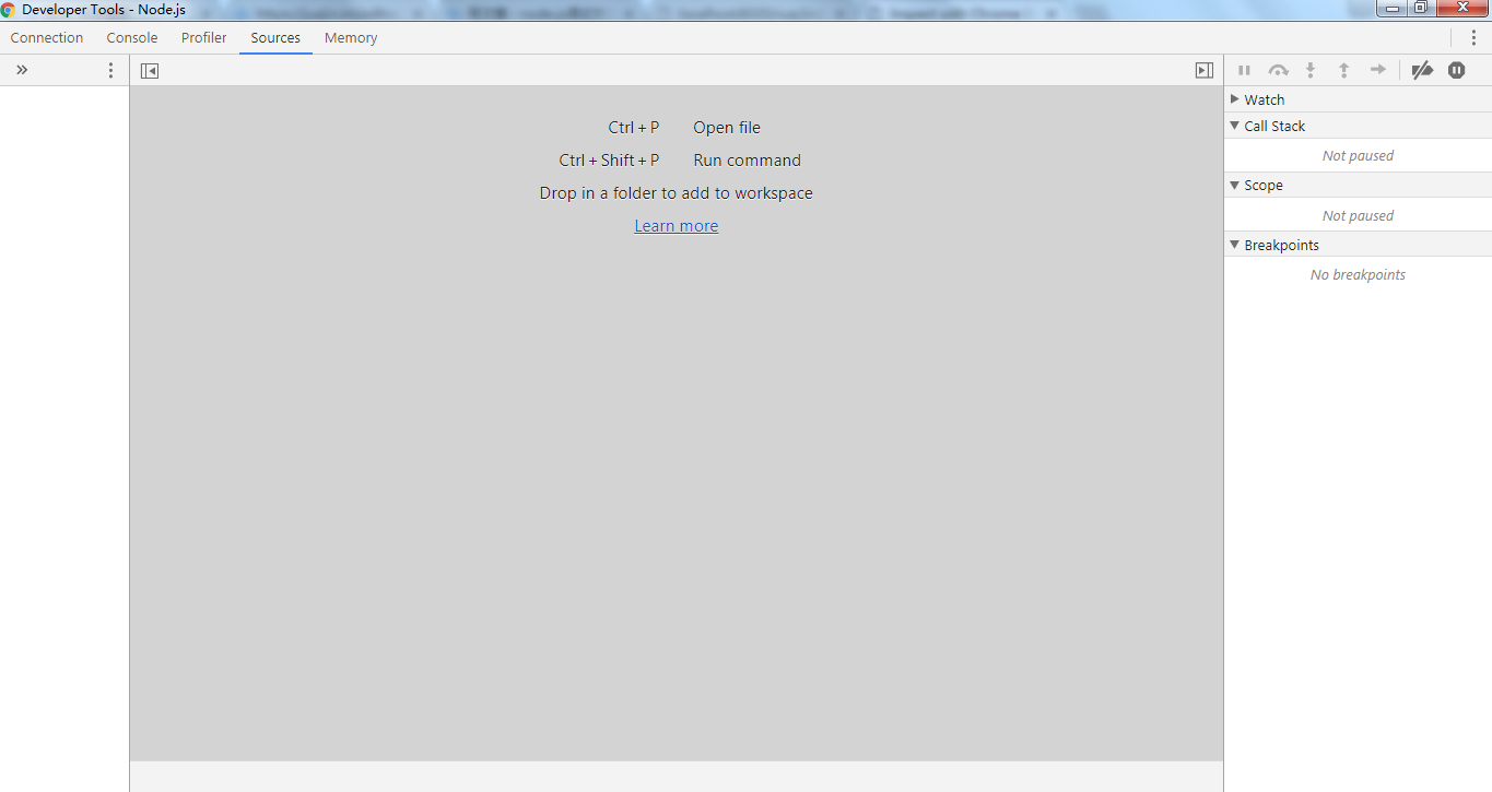 此时正常的话,在打开的node调试窗口中能够看到首行打断点的文件。