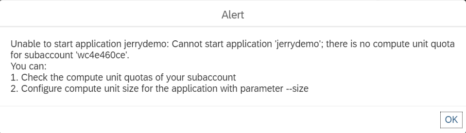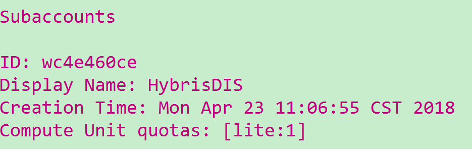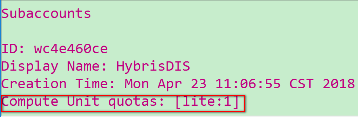 使用命令行neo set-quota --account wc4e460ce --user i042416 --host int.sap.hana.ondemand.com --amount lite:1 给subaccount分配一个计算单元: