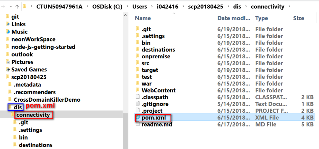 但是在connectivity的上一层文件夹dis里面没有local的pom.xml, 因此Maven会报上述的错误提示。