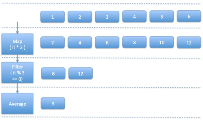 list.map{ it * 2 }.filter { it % 3 == 0 }.average()