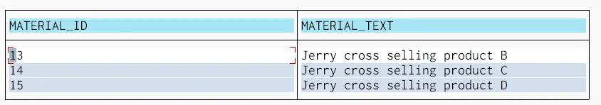 Java Connector(JCO)环境的搭建:Step by step to download and configure JCO in your laptop 我的ABAP系统有个函数名叫ZDIS_GET_UPSELL_MATERIALS,输入一个customer ID和product ID,会输出为这对客户和product组合维护的一组Upsell product ID和描述信息。 测试如下: