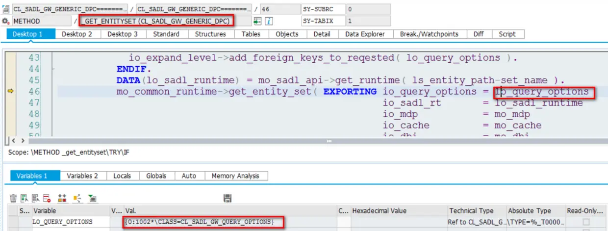 从前台通过UI5库文件发送的带有top参数的OData请求,被后台接收并维护于io_query_options参数中: