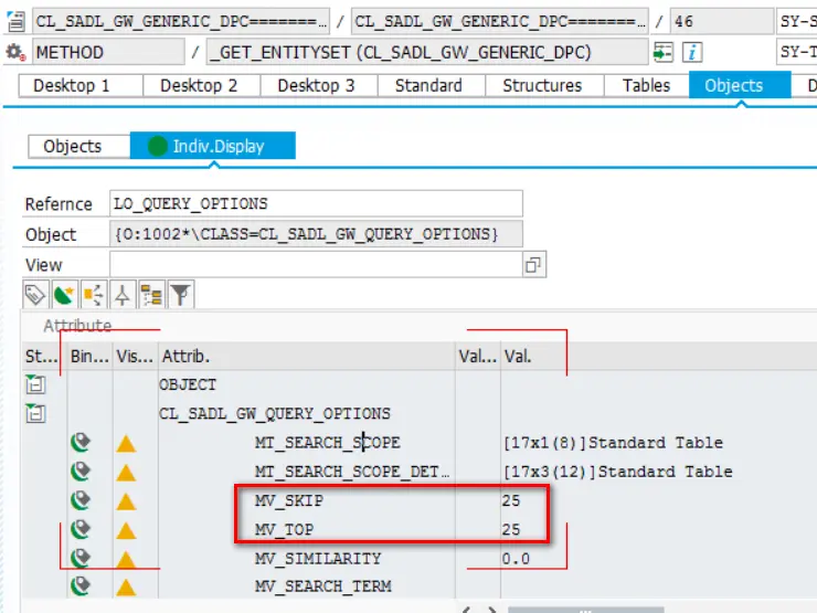 上图的top参数同S/4HANA应用的行为相同,传递到后台并得到处理: