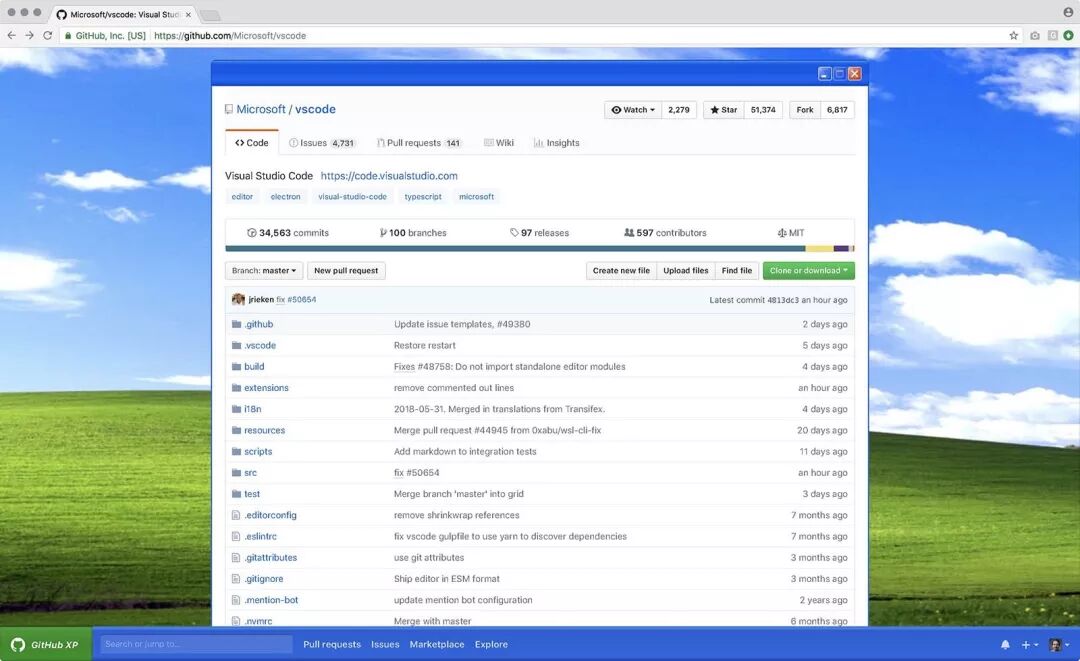 还记得上篇文章中分享的 MicroHub 吗?它可以将我们的 GitHub 主页编程微软的 office 风格,跟打开 word 文档一样,今天分享的这个开源插件直接可以将我们的 GitHub 的主题风格变成 Windows XP 风格的桌面,如下: