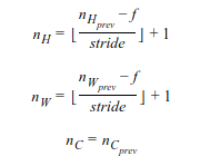 nHprev、nWprev和nCprev分别代表前一层的高、宽和通道数。如果要特别指明是第l层,也可以写作nH[l−1]、nW[l−1]、nC[l−1] .
