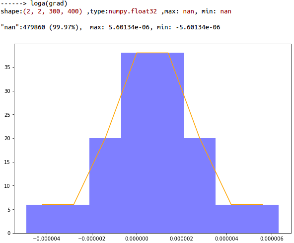 毛线!! 全是白的 分析一下 grad 中 99.97%的是nan, 人家 loss 都好人一个 你梯度怎么就成了nan! 数学上不成立啊
