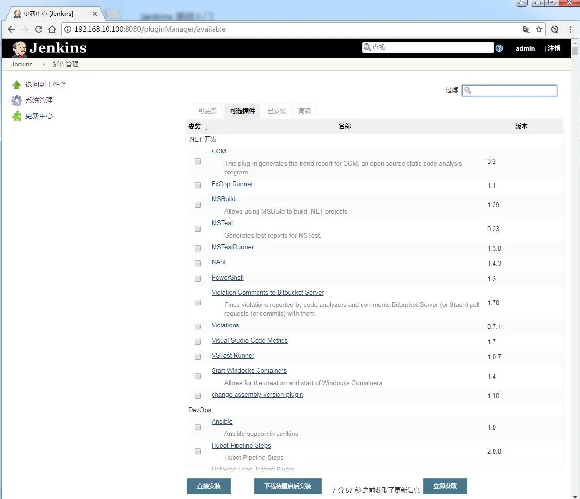 Jenkins 提供了很多插件,我们可以根据自己的需求进行下载,下载方式如下: