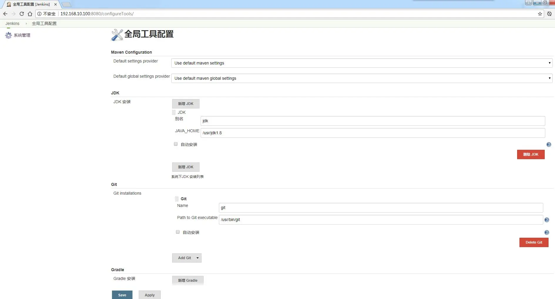 我们需要配置 JDK、Git 和 Maven。如下图: