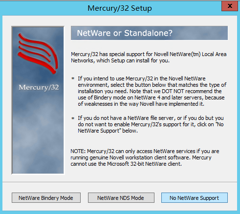 2.无需NetWare支持,请点击 No NetWare Support