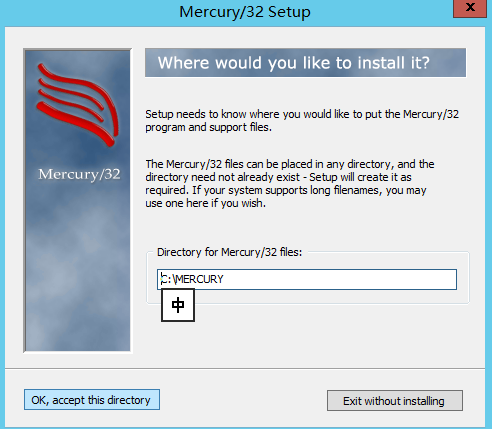 3.安装路径,默认C:\MERCURY,请点击 OK, accept the directory