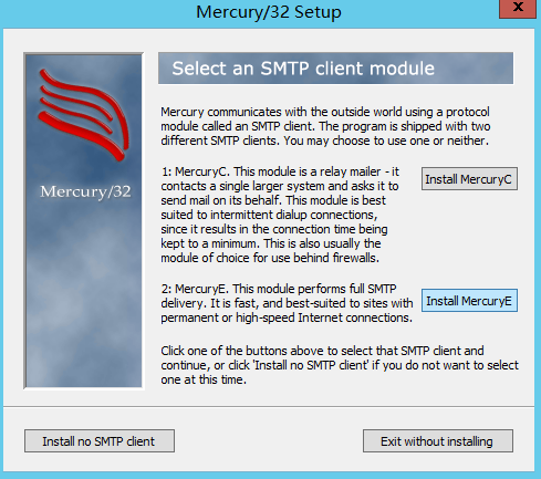 7.选择SMTP Client模块,本例是用外部邮局,所以选Install MercuryC