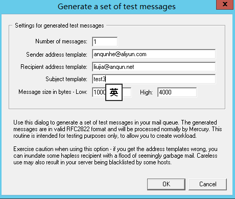 18.在Mercury里发测试邮件,注意from里要填写阿里云账号的地址