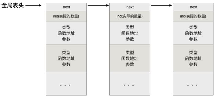 struct atexit是一个链表和数组的结合体。用图形表示所有注册的函数的存储结构大体如下:
