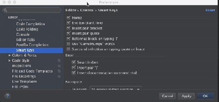 在"Editor->General->Smart Keys "中启动"CamelHumps "功能选项,就可以在连在一起的几个大写为首的单词间快速切换。Mac上是option+左右键。win上为 "alt " or "ctrl " 键。(这里会有个bug,开启后,比如你的变量名是几个单词,比如是isSuccess,这时候你双击想选中这个变量就发现不能全部选中,就变成选中Success了。)