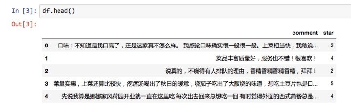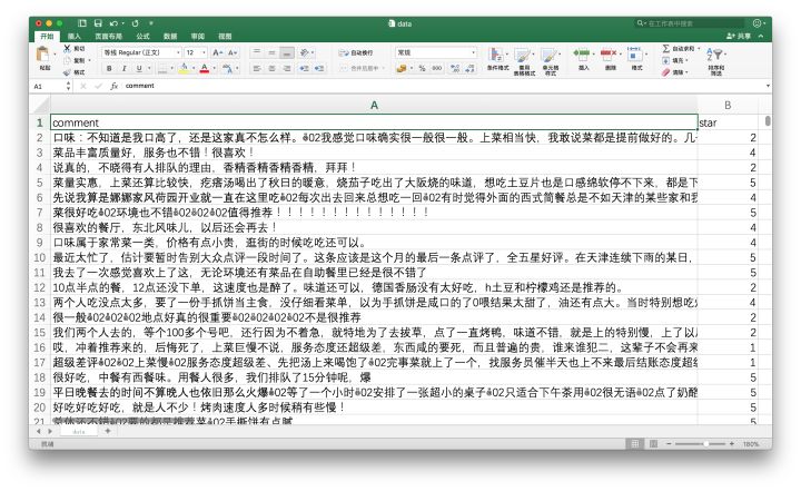整理好之后的评论数据,如下图所示。