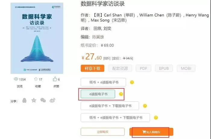 扫码购买《数据科学家访谈录》e读版电子书,立减20元现金,输入优惠码:c4a86b-b ,相当于7.6元购书。