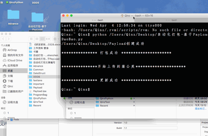 上图中appFileFullPath就是我们工程文件中.app的地址,至于PayLoadPath和packBagPath只需要你将"Qinz"用户名修改为你自己电脑的用户名即可!