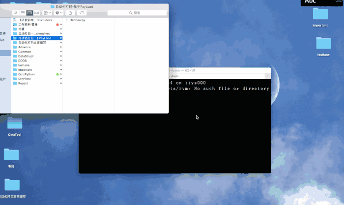 在上图中,我们只需要执行python脚本,可以看到桌面很快生成了一个ProgramBag的文件夹,打开文件夹,彩蛋就在里面了!由于我写的脚本里包含了上传蒲公英的代码,这个包有28.3M,网络不太好会影响上传时间,真正的打包时间是可以忽略不记的,也就是执行脚本,敲击回车就好了的事!