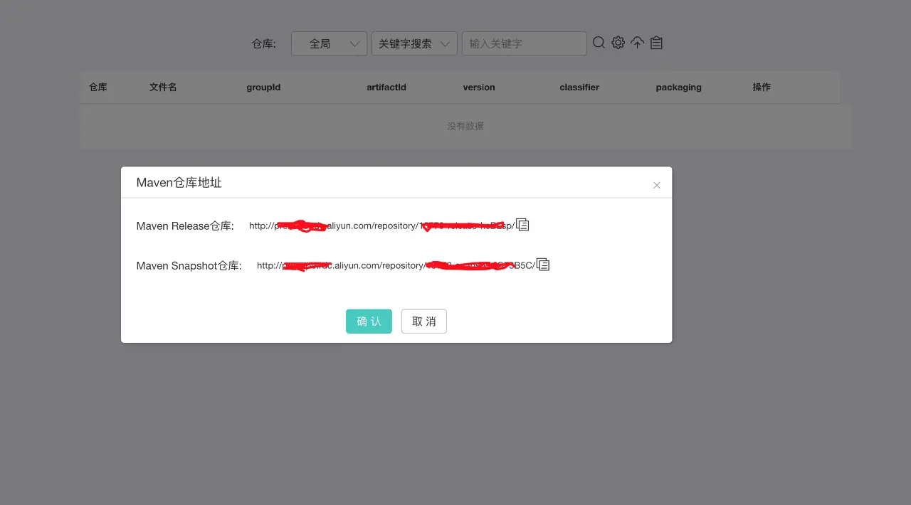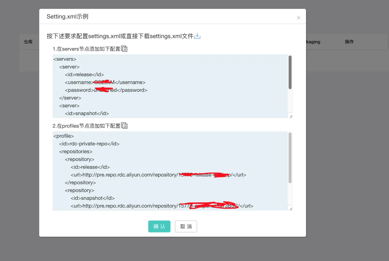 私有仓库不允许匿名上传和下载二方库,云效为每个私有仓库生成了相应的用户名和密码。请注意不要泄露该用户名和密码。