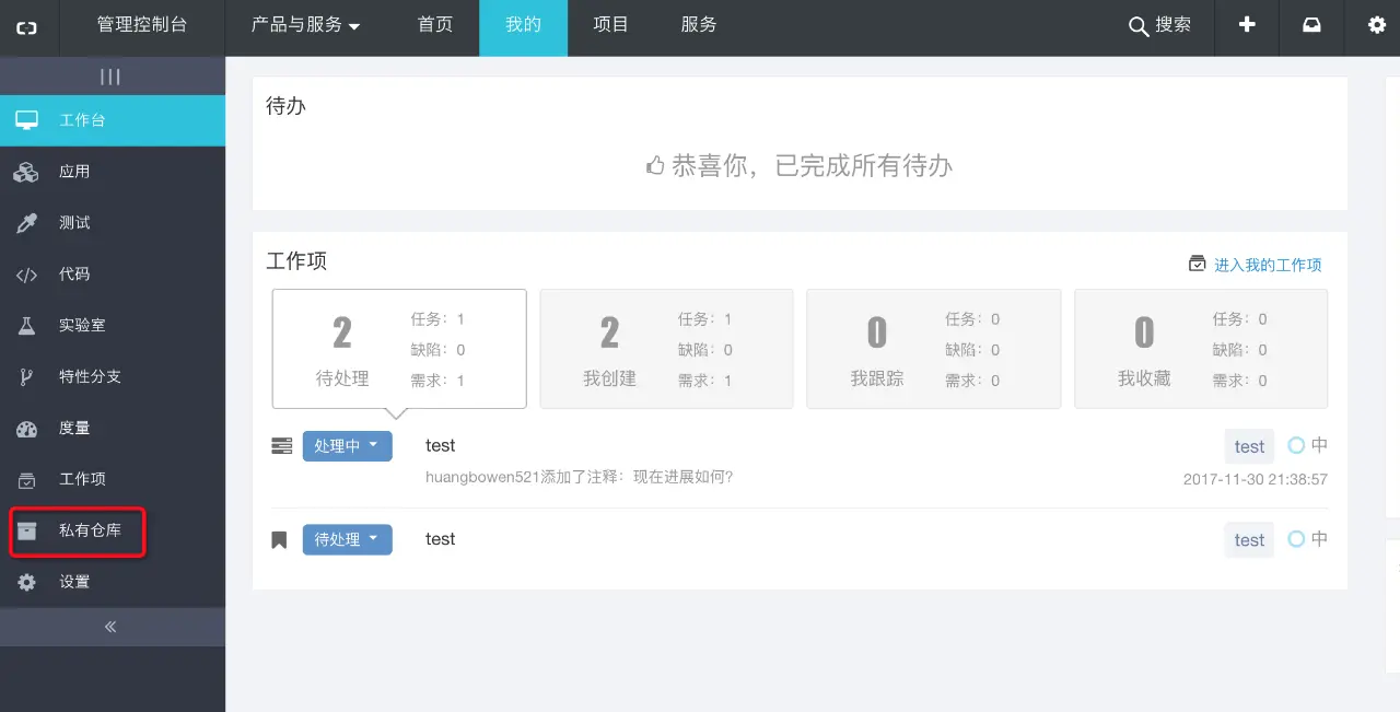 这样在左侧菜单栏会看到‘私有仓库’链接。