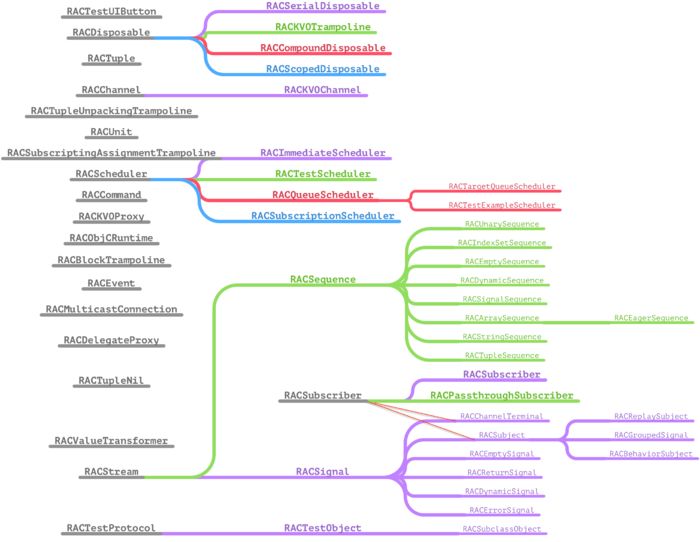 ReactiveCocoa比较复杂,在正式开始介绍它的核心组件前,我们先来看看它的类图,以便从宏观上了解它的层次结构: