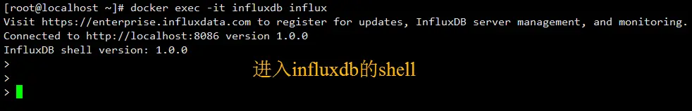 - 进入influxdb容器内部,并执行influx命令: